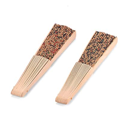 Set of 2- Multicolour Floral Design Soft Wood Folding Hand Fans Or Wall Art (23cm)
