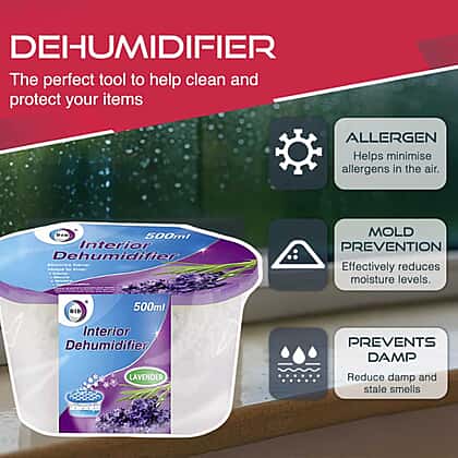 Keep your home fresh, dry, and comfortable with this value set of 24 scented interior dehumidifiers, designed to absorb excess damp, moisture, and condensation quickly and effectively. Each 500ml disposable tub is filled with high-performance moisture-absorbing crystals and delicately scented to help reduce musty odours while improving indoor air quality.