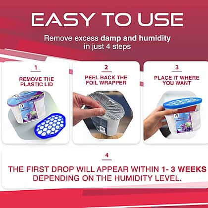 Simply peel back the foil and place where needed. The advanced hydrophilic crystals draw moisture from the surrounding air and safely trap it inside the container, helping to reduce condensation and support the prevention of mould, mildew, and damp-related odours. Easy to use, mess-free, and long-lasting, they provide reliable moisture control during colder months and year-round humidity management.