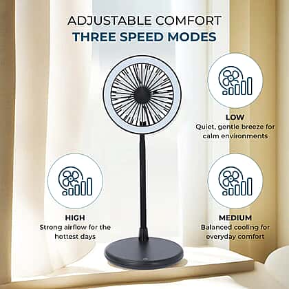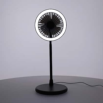 Foldable Desk Fan with LED Light and 3 Wind Speed Setting (Size 31x12x12 cm) - Black