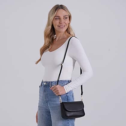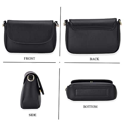 Elegant Flap Crossbody Bag with Adjustable Strap - Black
