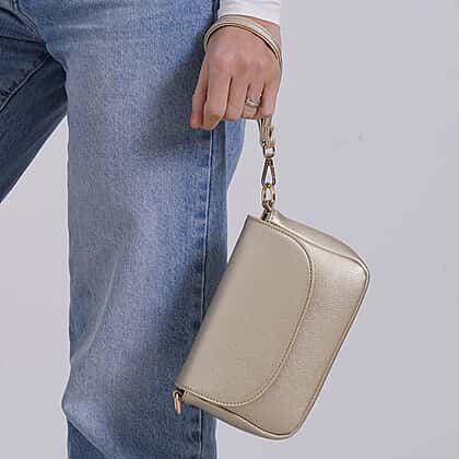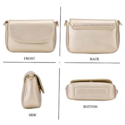 Elegant Metallic Gold Flap Crossbody Bag with Adjustable Strap