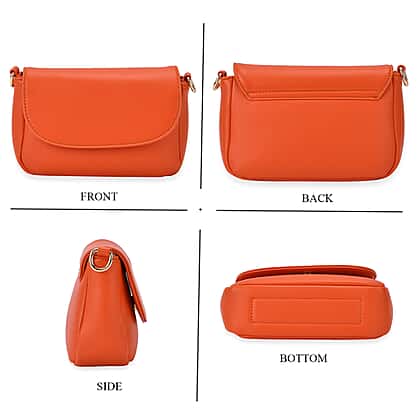 Elegant Flap Crossbody Bag with Adjustable Strap - Orange