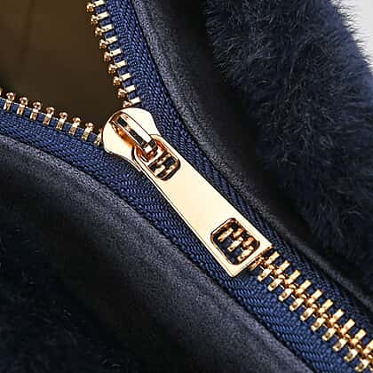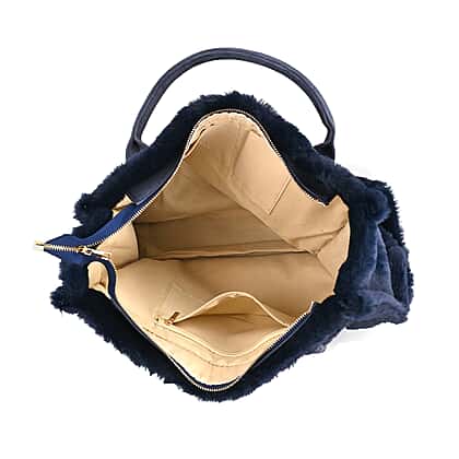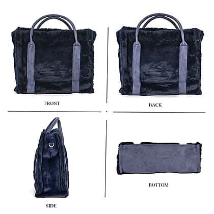 Faux Fur Plush Tote Bag with Handle Drop - Navy