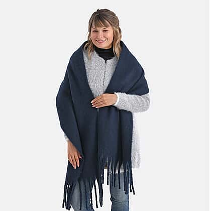 Soft Touch Large Tassle Scarf (190 x 40 cm) - Navy