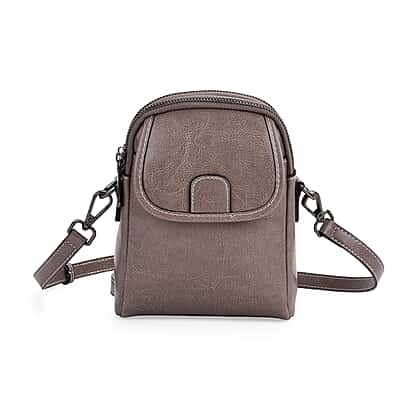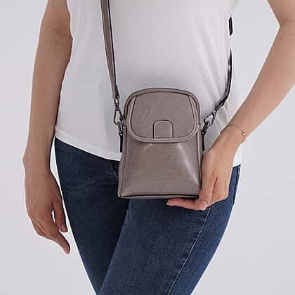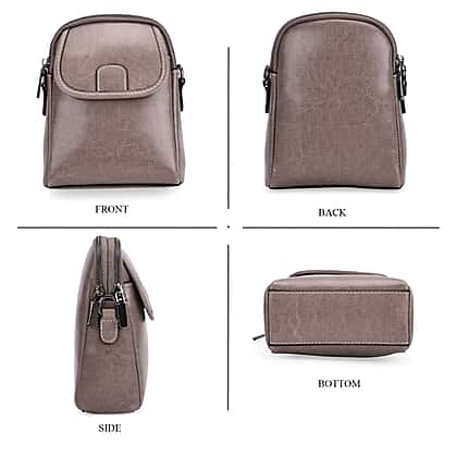 Genuine Leather Mini Messenger Crossbody Bag With Adjustable Strap - Silver Grey