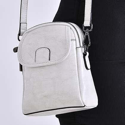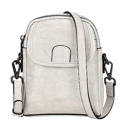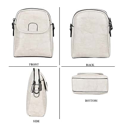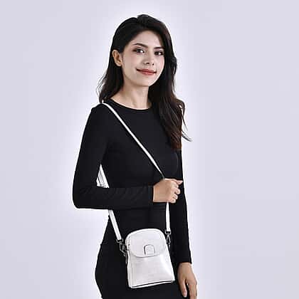 Genuine Leather Mini Messenger Crossbody Bag With Adjustable Strap - White