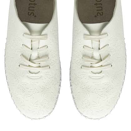 The Lotus ladies’ Alicja floral lace-up shoe perfectly combines style and comfort. With a colourful upper adorned with an elegant floral design, these shoes stand out effortlessly. The leather sock provides luxurious comfort, while the lace-up design ensures a secure fit. Resting on a crisp white sole with detailed blanket stitching, the Alicja shoes offer a touch of sophistication to your casual ensemble. The 1cm heel adds just the right amount of lift without compromising comfort. These shoes are a versatile addition to your wardrobe, ideal for any off-duty look.
