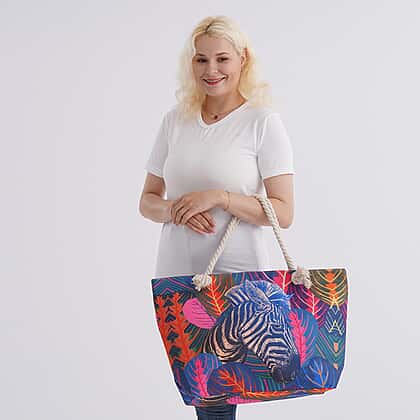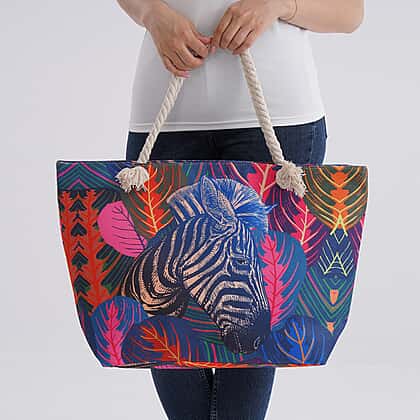 Zebra Head Pattern Tote Bag with Rope Handles - Multicolor