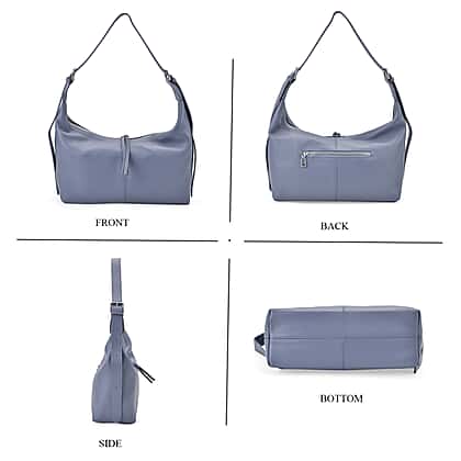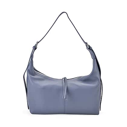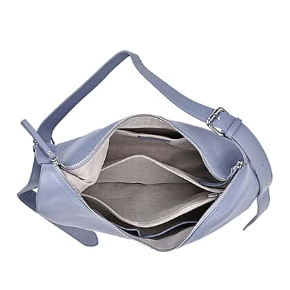 Bring effortless sophistication to your look with this genuine leather shoulder bag in soft blue. Designed for the modern woman, it features a spacious interior lined with durable polyester and a convenient zipped closure to keep everything secure. With two internal zipped and slip pockets and an external zipped compartment, it’s as functional as it is stylish. Subtle metallic accents and fine stitching highlight its craftsmanship. The adjustable strap offers comfort and flexibility, making it ideal for both workdays and weekends.