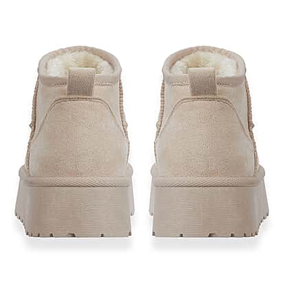 Step out in style with the Emma Ladies COLLEEN low cut platform boots, designed to offer comfort and elegance. Featuring a 1.75-inch platform sole and a soft micro-suede finish, these boots are the perfect combination of fashion and practicality. The ankle-cut upper and closed round toe provide a sleek silhouette, while the slip-on design with a handy back pull tab ensures easy wear. The cosy white fur interior adds warmth, making them ideal for chilly days. With a closed-heel counter for added support and a synthetic upper, lining, and outsole, these boots are perfect for all-day wear.
