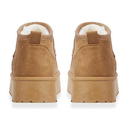 Step out in style with the Emma Ladies COLLEEN low cut platform boots, designed to offer comfort and elegance. Featuring a 1.75-inch platform sole and a soft micro-suede finish, these boots are the perfect combination of fashion and practicality. The ankle-cut upper and closed round toe provide a sleek silhouette, while the slip-on design with a handy back pull tab ensures easy wear. The cosy white fur interior adds warmth, making them ideal for chilly days. With a closed-heel counter for added support and a synthetic upper, lining, and outsole, these boots are perfect for all-day wear.