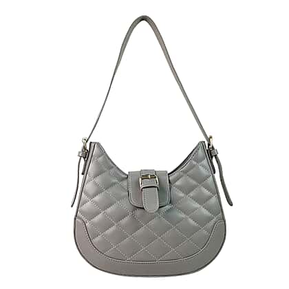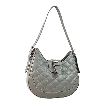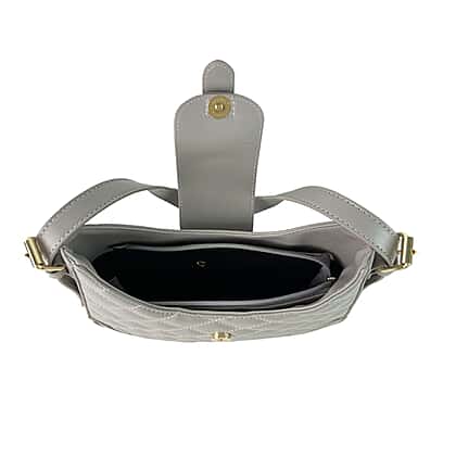 Close Out Deal - Quilted Plain Bag with Shoulder Strap - Grey