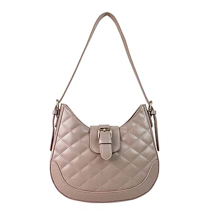 Closeout Deal - Quilted Plain Bag with Shoulder Strap - Nude