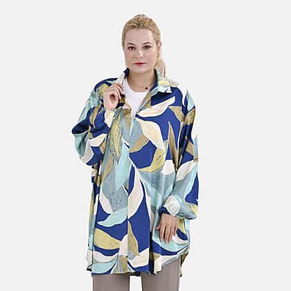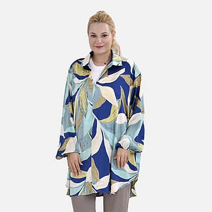 Effortlessly stylish, the La Marey abstract leaf printed oversized shirt adds a splash of colour and confidence to your everyday wardrobe. The vibrant mix of blue and multi colour tones creates a lively leaf pattern that stands out beautifully. Crafted from a soft, breathable fabric, it drapes gracefully and feels comfortable against the skin. The relaxed fit, collared neckline, and long sleeves make it easy to dress up or down. Perfect for pairing with neutral trousers or jeans, this shirt is designed to bring a touch of playful sophistication to any outfit.
