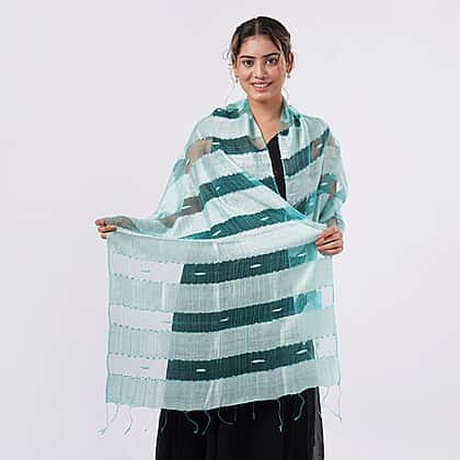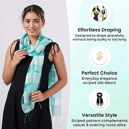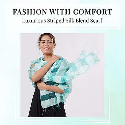 Bring a refreshing feel to your ensemble with the 30% Silk and Modal Printed Women's Scarf in Aqua. Made from a smooth silk and modal blend, it offers a soft, breathable texture that sits comfortably against the skin. The striped design introduces a vibrant yet elegant flair, while the fringed edges add a relaxed finish. Sized at 175 x 60 cm, it’s easy to style for both casual and dressier occasions. Perfect for pairing with light neutrals or denim, this scarf adds a breezy, polished touch to your look.