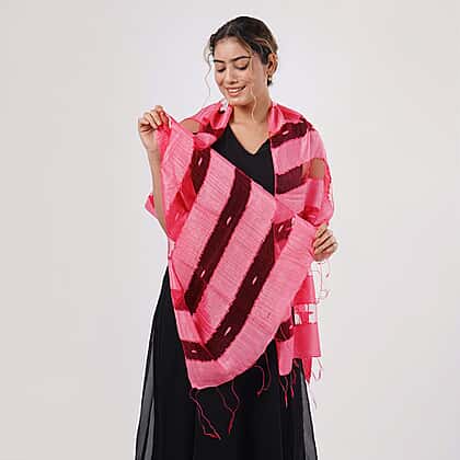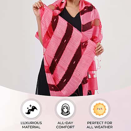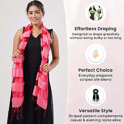 Add a playful twist to your style with the 30% Silk and Modal Printed Women's Scarf in Pink. Crafted from a blend of silk and modal, it offers a luxuriously soft texture and a lightweight feel that’s perfect for layering. The striped design in cheerful pink tones brightens up any outfit, while the fringed edges bring a hint of relaxed elegance. Measuring 175 x 60 cm, it’s versatile enough to wear as a shawl, wrap, or neck scarf. Ideal for adding colour and charm to your everyday look.