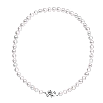 White Shell Pearl , White Cubic Zirconia Necklace (Size - 22) Pure White Brass 336.00 ct