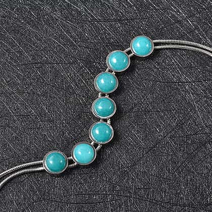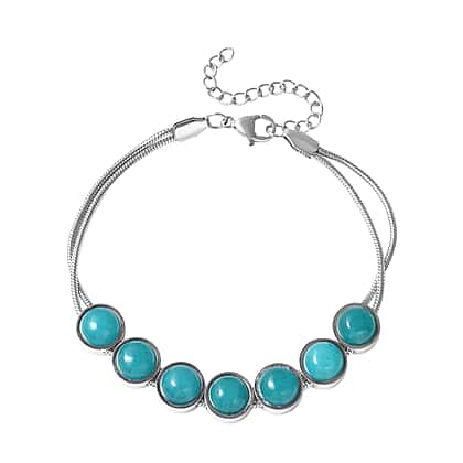 Amazonite Bracelet (Size - 7.5 With 2 Inch Extenders) Pure White Stainless Steel 14.000 Ct.
