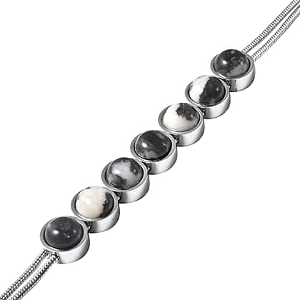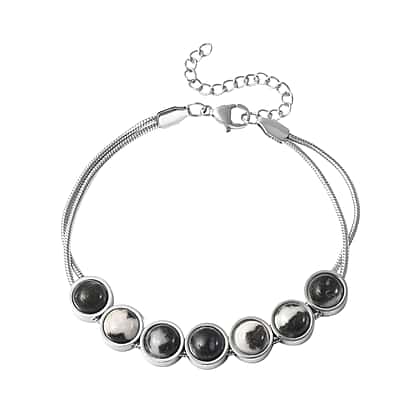 Inspired by the Big Dipper constellation this fabulous-looking Dendritic Agate Bracelet features 7 round gemstones. The artfully set gems bear an uncanny resemblance to the popular 7-star constellation. The gemstones are manfully cut and securely set in stainless steel bezel. A dual-stranded chain matches the heavy look of polished gemstones. The bracelet can be worn easily with a lobster lock.