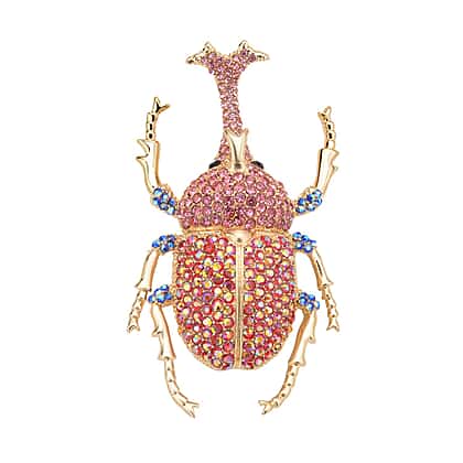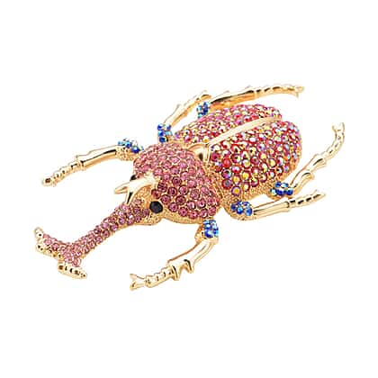 Multi Colour Austrian Crystal Beetle Brooch in Yellow Gold Tone
