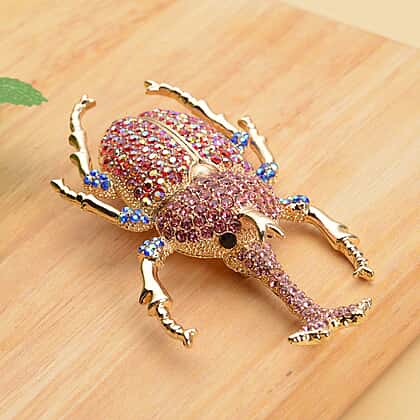 Finish your look in chic style with this multi-colour Austrian crystal beetle brooch. Designed in yellow gold-tone, the brooch can complement both formal and casual attire. It features 50 multi-coloured Austrian crystals in faceted cuts (5.000 Carat) that are cluster set to radiate a beautiful shine. The brooch boasts fine detailing that lends it a realistic look.