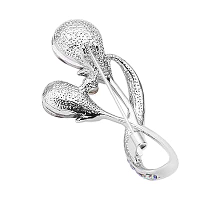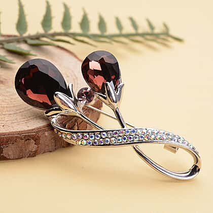 Simulated Garnet, White AB Crystal and Red Austrian Crystal Brooch in Silver Tone