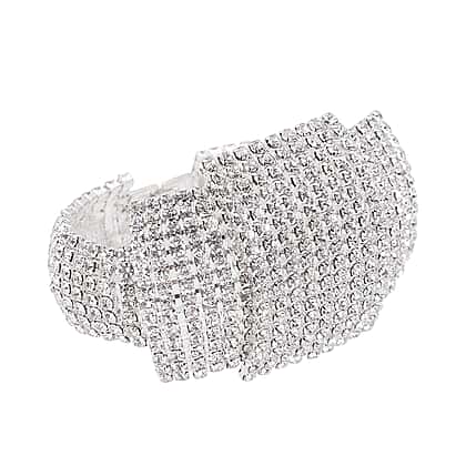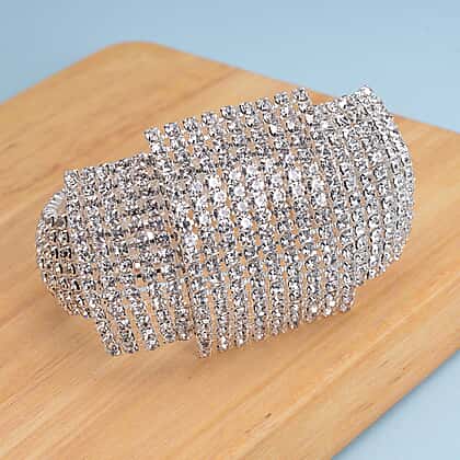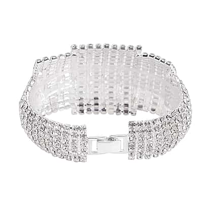 Vintage White Austrian Crystal Bracelet (Size 7.5) in Silver Tone