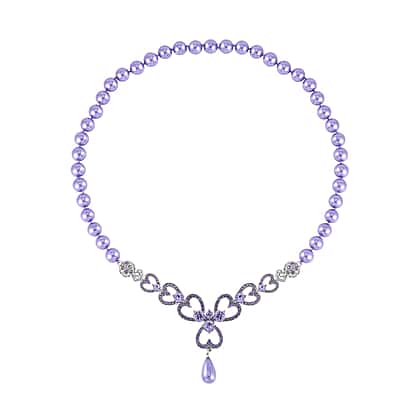 Purple Austrian Crystal and Pink Shell Pearl Necklace (Size - 23)