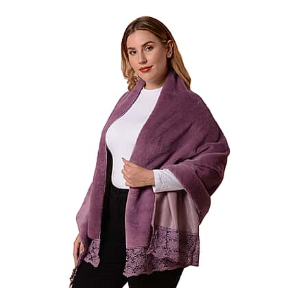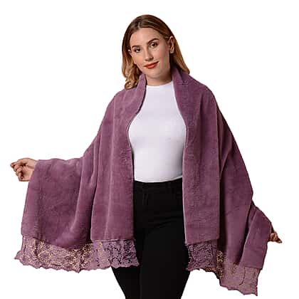 Faux Fur Cross-Over Shawl (Size 190x77 cm) - Purple