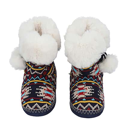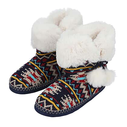 Enter the world of warmth and comfort with these faux fur boots that perfectly blend style and function. The outer surface is quite eye-catching with a vibrant multi-coloured pattern, which gives any outfit a pop of colour. The faux fur lining and folded flaps maximise the warmth and comfort for you to feel snug and cosy. The pom-pom tie at the sides adds a delightful touch to the boots. The soles are made of TPR, which provides superior protection against skids and falls in wet and icy conditions. Versatile and trendy, the boots will make your favourite pair to pull on while stepping out.