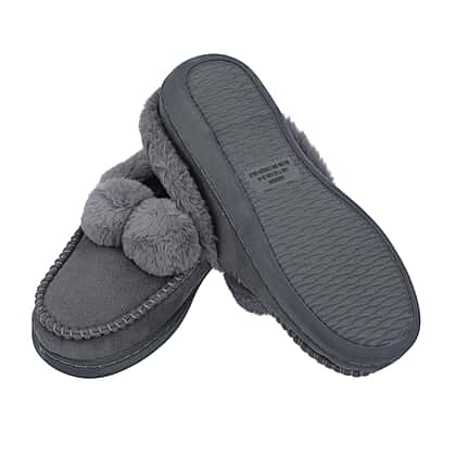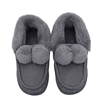 Suede Faux Fur Boots with Waterproof TPR Sole - Grey