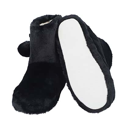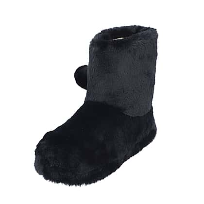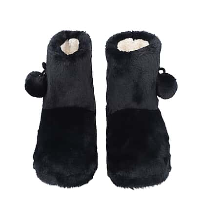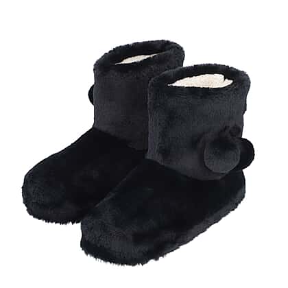 Rabbit Faux Fur Boots with Waterproof TPR Sole - Black