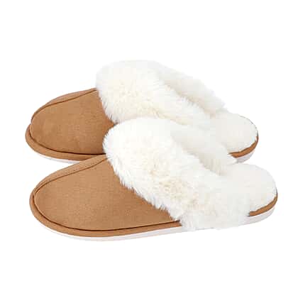Super Soft Suede Home Slippers with Faux Fur - Coffee