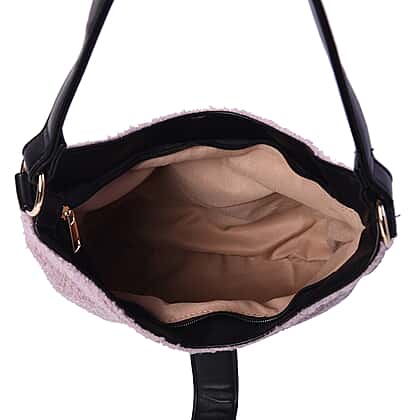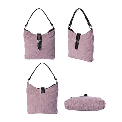 Faux Fur Shoulder Bag with Clasp Closure Light Purple Colour