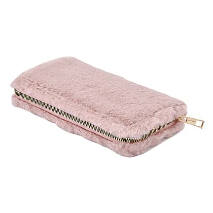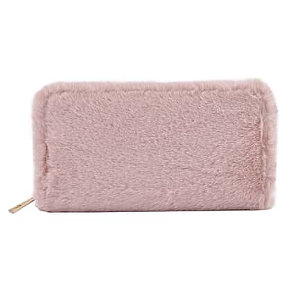 Faux Fur Long Size Wallet with Zipper Closure - Pink