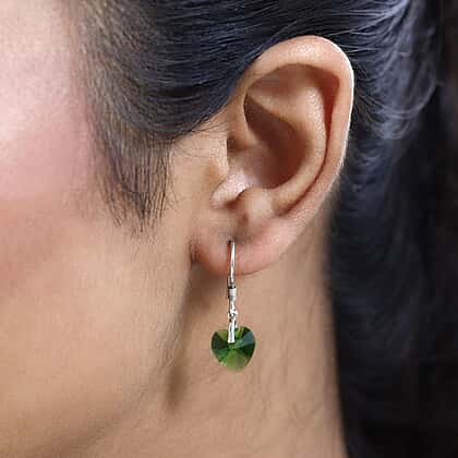 Fern Green Austrian Crystal Heart Earrings in Platinum Overlay Sterling Silver