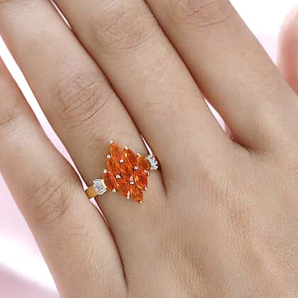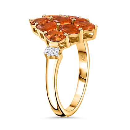Fire Opal, White Diamond Cluster Ring in 18K Vermeil YG Plated Sterling Silver 0.960 Ct.