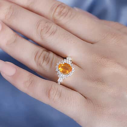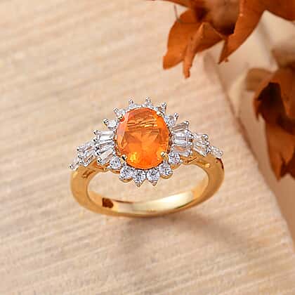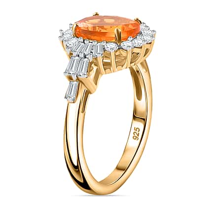 Fire Opal, White Zircon Main Stone With Side Stone Ring in 18K Vermeil Yellow Gold Plated Ct 2.21.