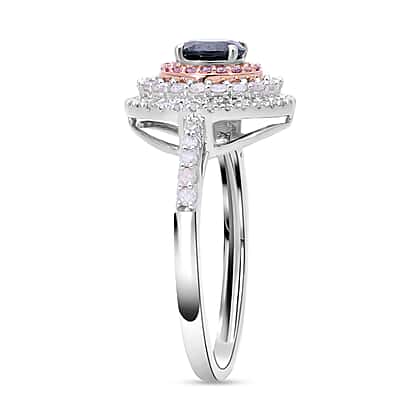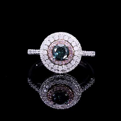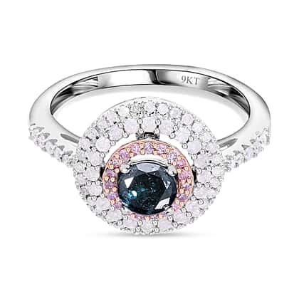 First Time Ever- 9K White Gold Blue Diamond (Solitaire 0.50 Ct) Natural Pink Diamond and White Diamond Halo Ring 1.00 Ct.
