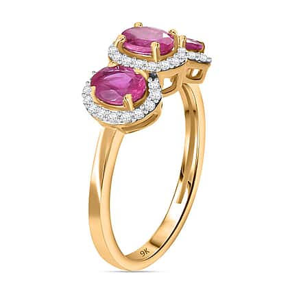 First Time Ever - 9K Yellow Gold Mozambique Pink Sapphire and Moissanite Ring 1.60 ct.