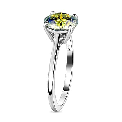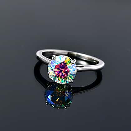 First Time Ever Mystic Luminous Moissanite Solitaire Ring in Platinum Overlay Sterling Silver 1.84 Ct.