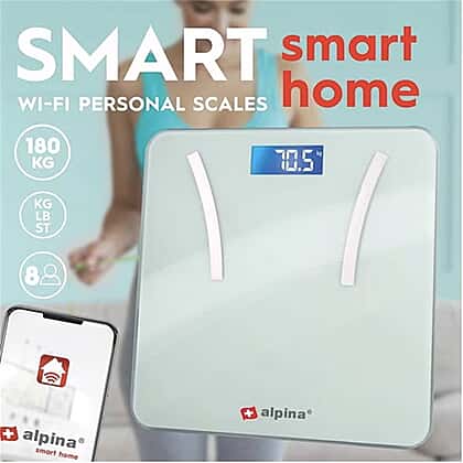 Track and achieve your fitness goals seamlessly with the Alpina Smart Home Body Fat Scale, designed for full body analysis. This Wi-Fi-enabled digital scale measures body weight, muscle mass, BMR, bone mass, fat percentage, and water weight, with results saved in the Alpina Smart Home app for easy access. Ideal for fitness enthusiasts, the app supports up to 8 users, allowing the whole family to monitor progress in one convenient location. An essential tool for anyone committed to health and fitness, this scale empowers you to track your journey with precision.