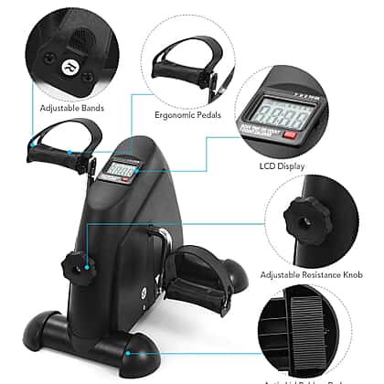 • INTEGRATED STRAPS: This mini bike pedal exercised resembles a bicycle and features integrated straps to keep your feet stable while you exercise
