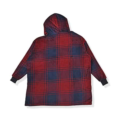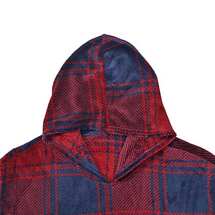 Flannel Checkered Printed Pattern Hoodie (Size 96x89 cm) - Red & Navy