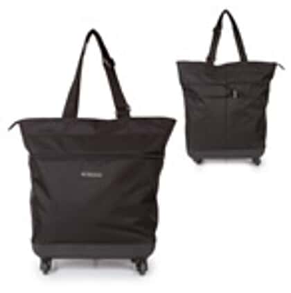 Flat Pack Cabin Sized Trolley Bag with Zipped Hood Pocket - Black