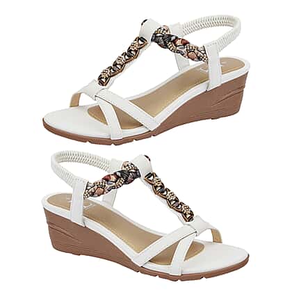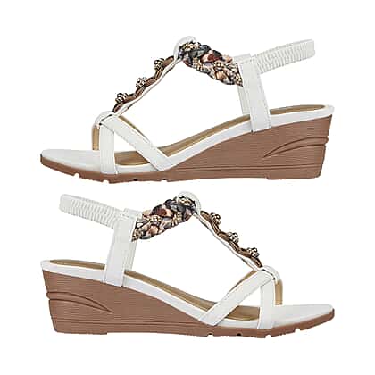 Shoes by Emma Ladies ST VINCENT Lightweight Wedge Sandal with Plaited Material and Diamante Trim - White
