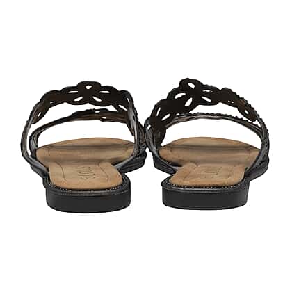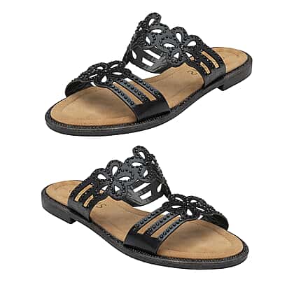 Lotus Aura Diamante Flat Sandals (Size 3) - Black