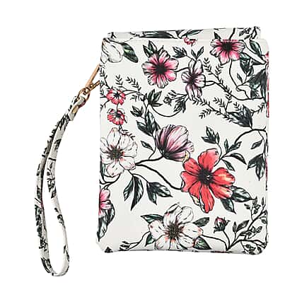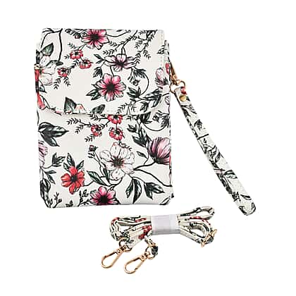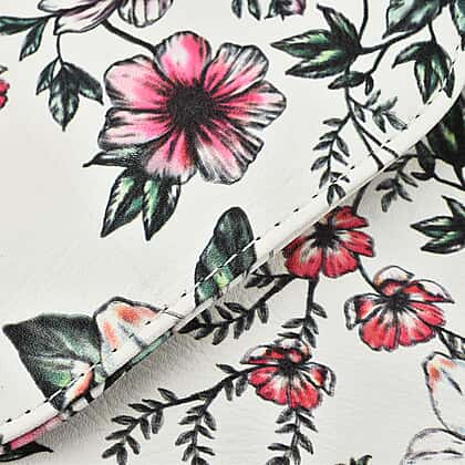 Floral Crossbody Faux Leather Bag with Shoulder Strap - White