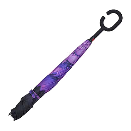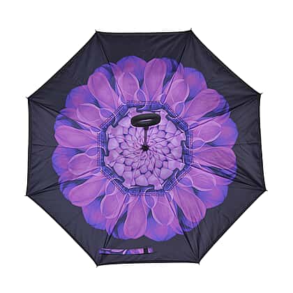 Floral Pattern Double Layer Canopy Inverted Umbrella (Size 82X10 CM) - Purple & Black